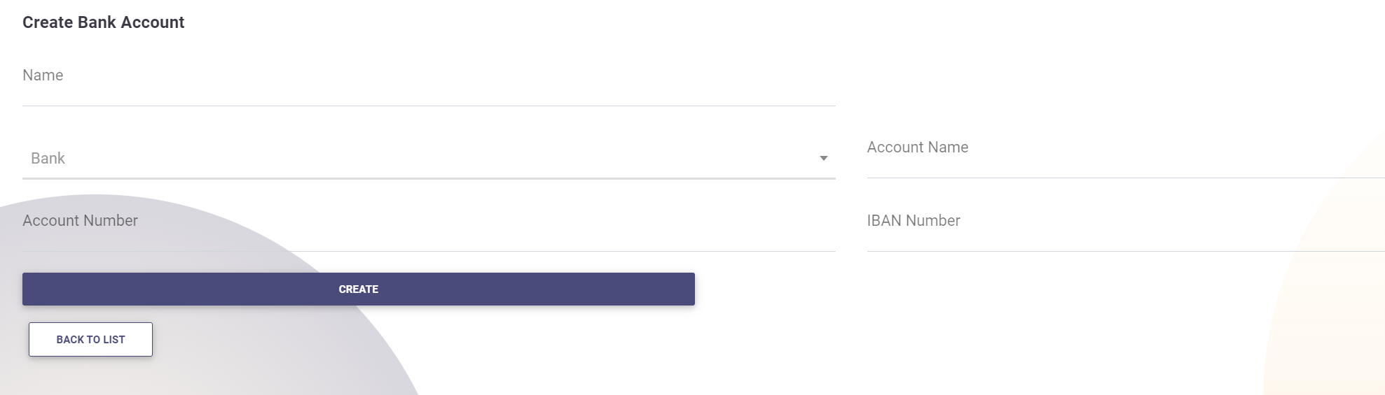 Once all fields are completed, click on Create to save the new bank account.