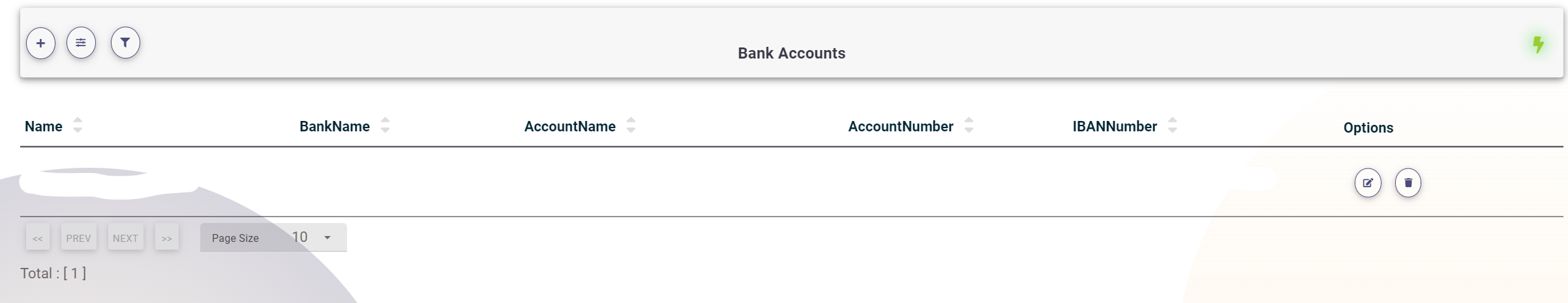 To add a new bank account, click on the plus (+) icon at the top, then fill in the required fields: