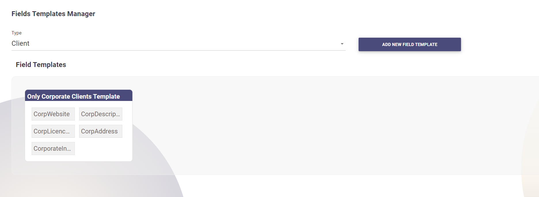 - To add a new Field Template, click on the Add New Field Template button.