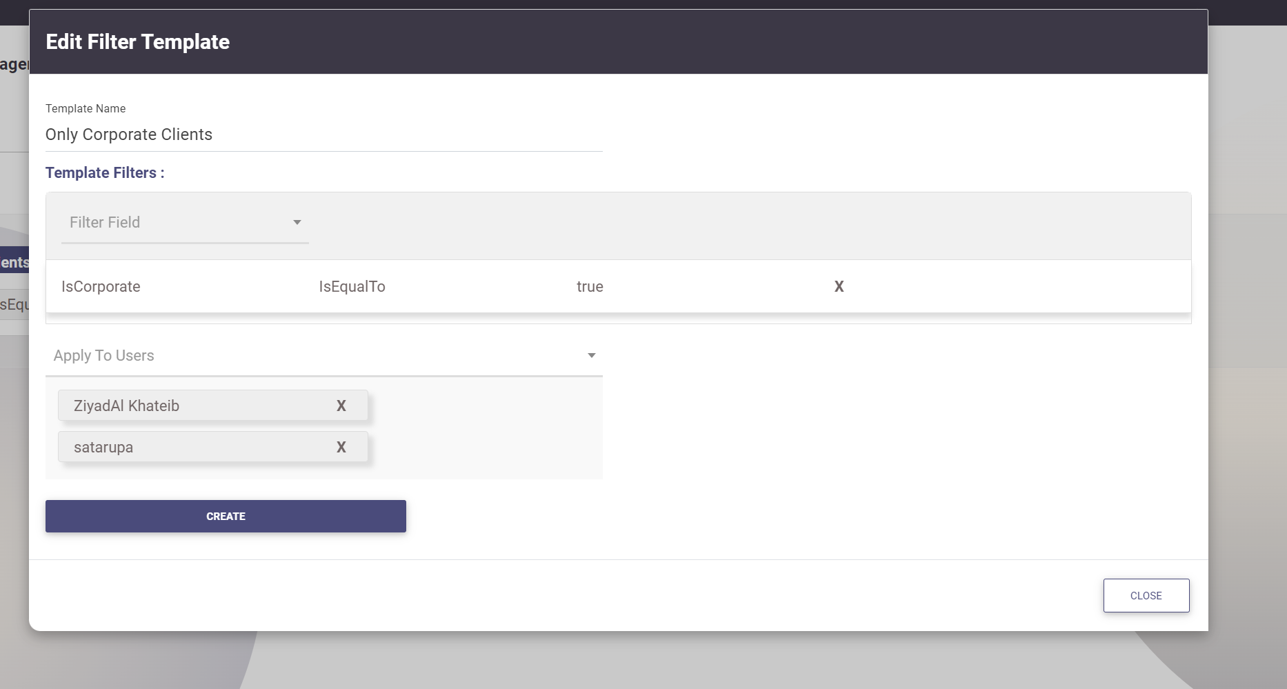 - Click Create to save the template. The selected users or all users with the selected roles will have access only to the records that meet the filter criteria.