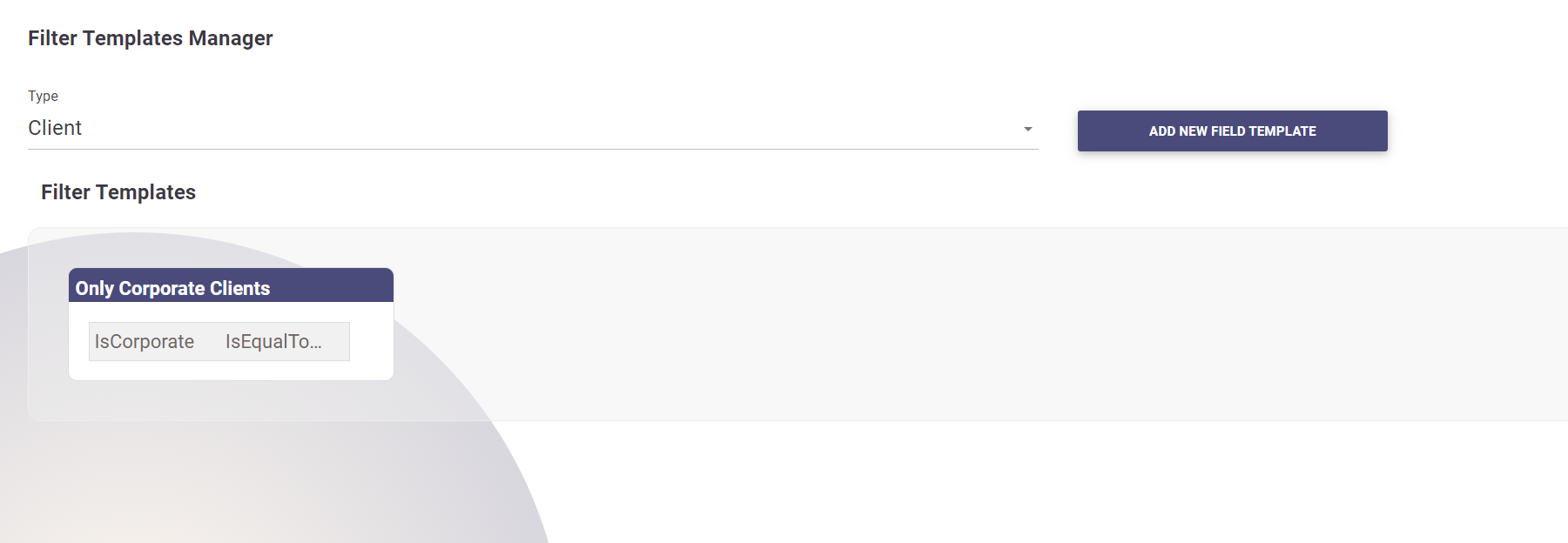 - To add a new Filter Template, click on the Add New Filter Template button.