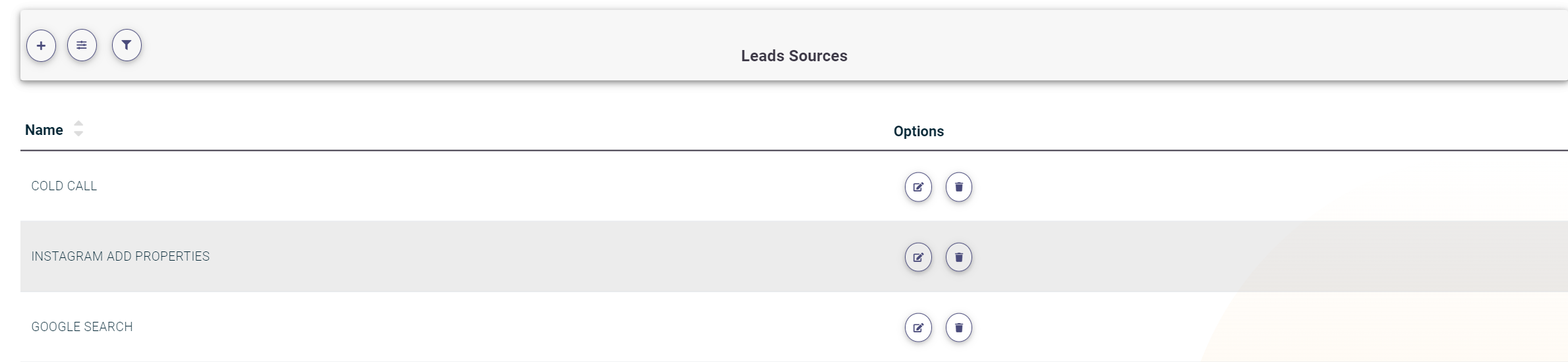 - Click on the plus (+) icon at the top of the Lead Sources list.