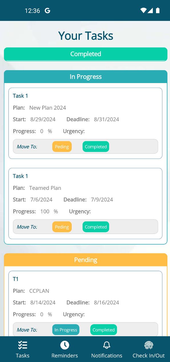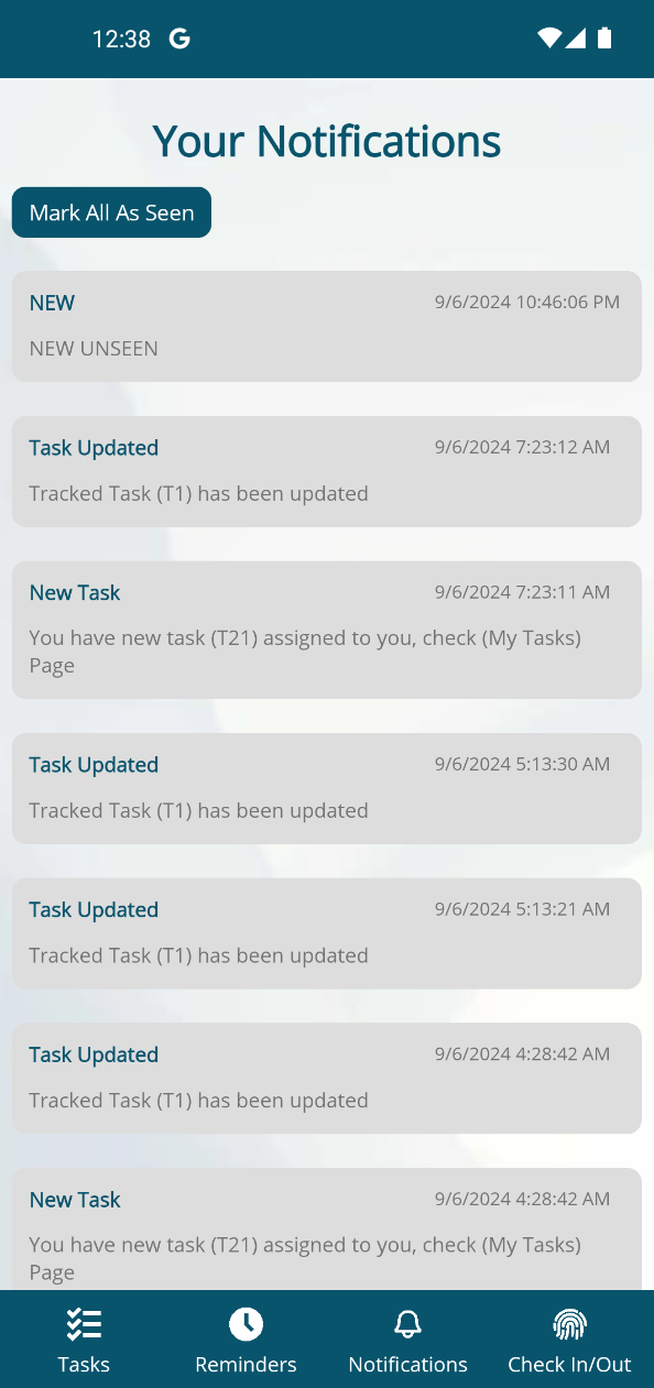 All reminders set for the employee are available in the app, helping them stay on top of upcoming deadlines, meetings, or important events.