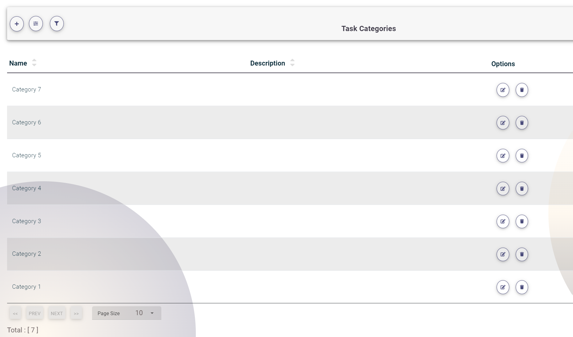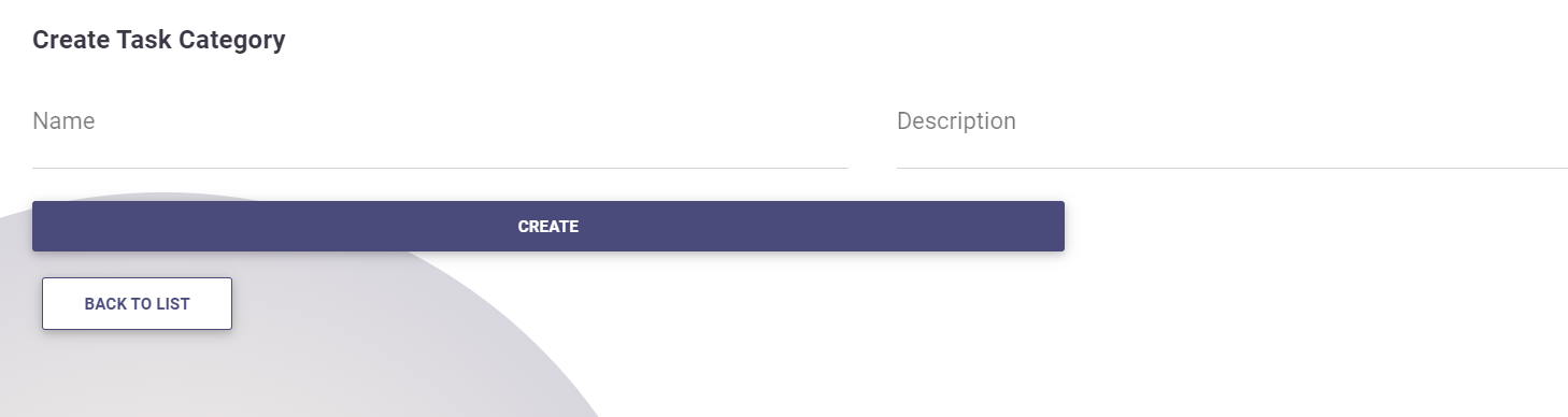 To create a new task category, click on the plus (+) icon at the top of the Task Categories Pages. This will open a form where you can define the category.
