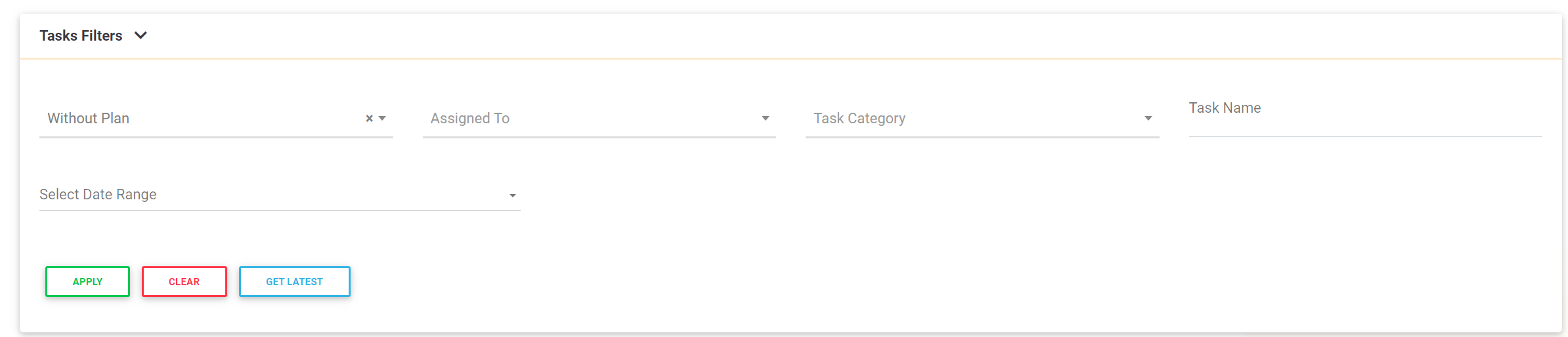 - Filtering Tasks: Expand the tasks filter panel to refine the list of displayed tasks. You can filter tasks by various criteria, such as: