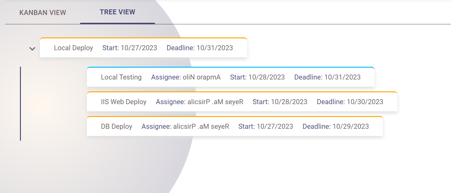 - Tree View: For tasks with nested parent and child relationships, managers can view them in a tree view format. This view provides a hierarchical structure, making it easier to understand the dependencies and flow of tasks.