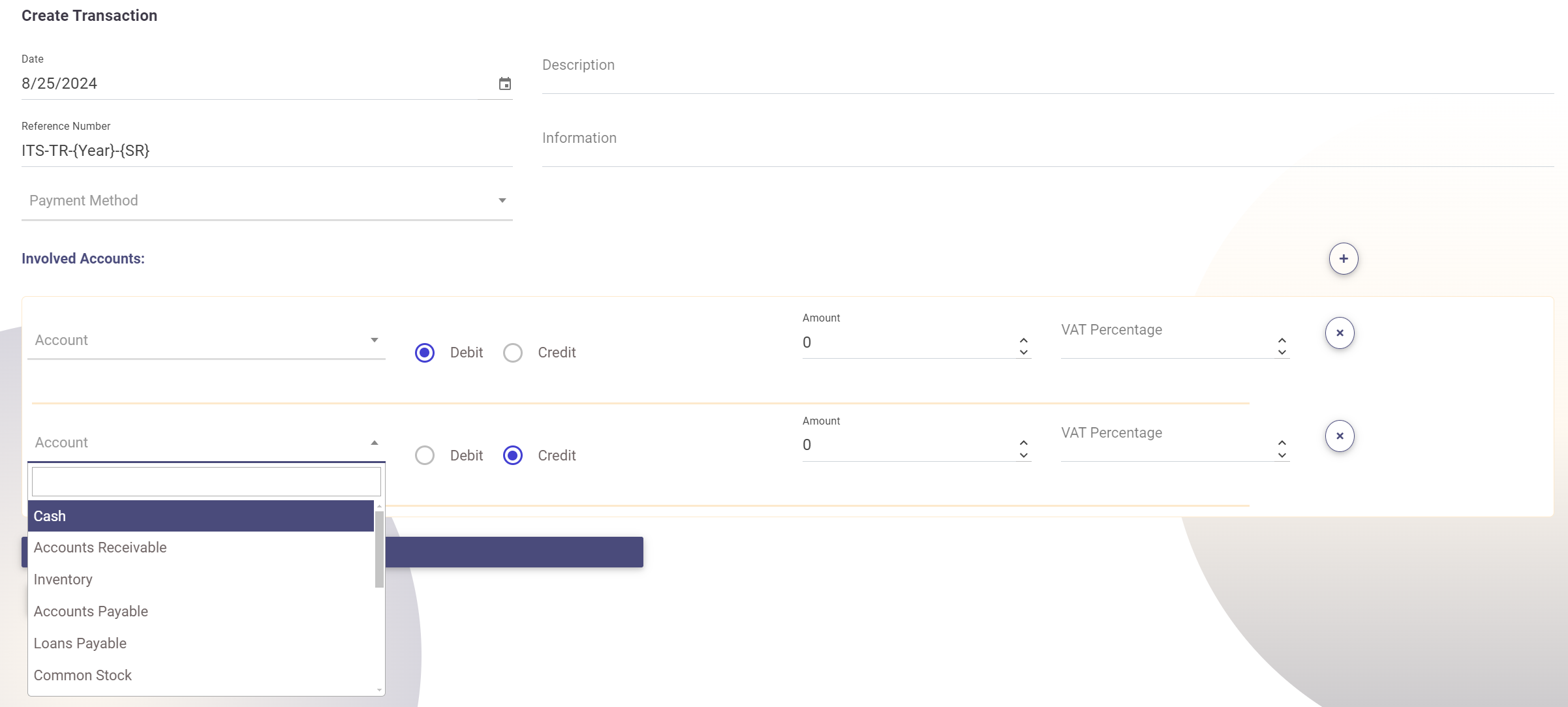 - Transaction Type: Choose whether the transaction is a debit or credit.